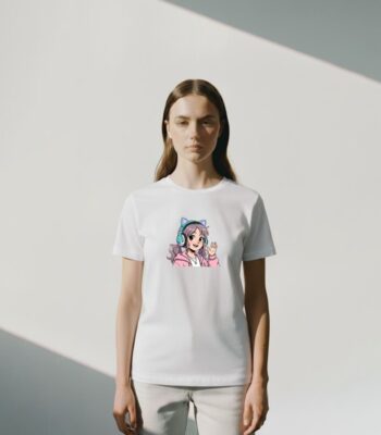 White Women Crew Neck Graphic T-shirt